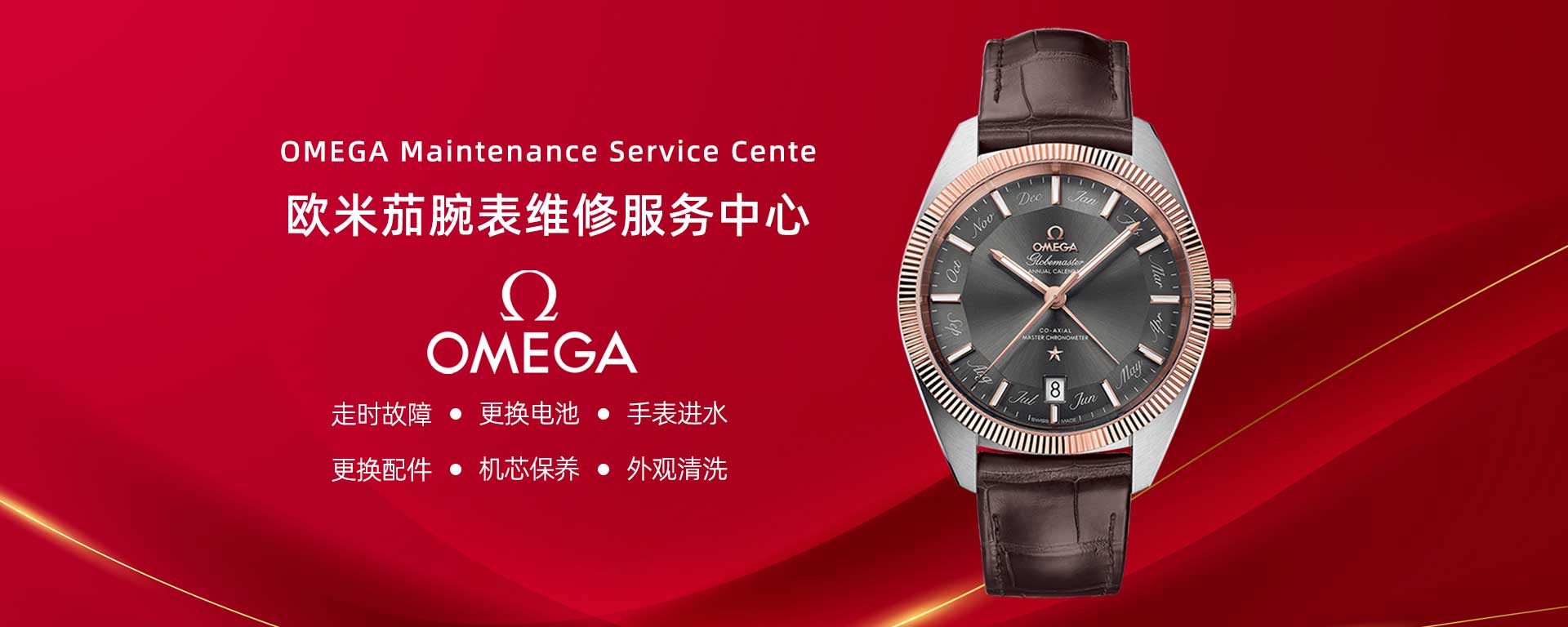 欧米茄手表故障问题主要包括时间不准确(可能由机芯问题或磁化导致)、自动上链功能失效、防水性能下降、零件松动、电池没电及机芯损坏等。当您的欧米茄手表遇到此类问题后,很有可能是欧米茄手表需要维修保养、更换配件,您只需将手表待到欧米茄售后维修服务中心进行检测、维修保养即可。检测维修处理,我们将为您提供专业的欧米茄维修及欧米茄保养服务,让您的欧米茄爱表焕然一新。